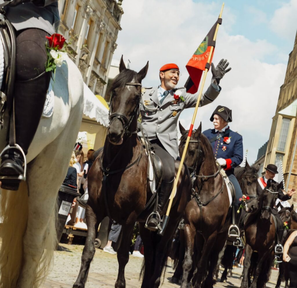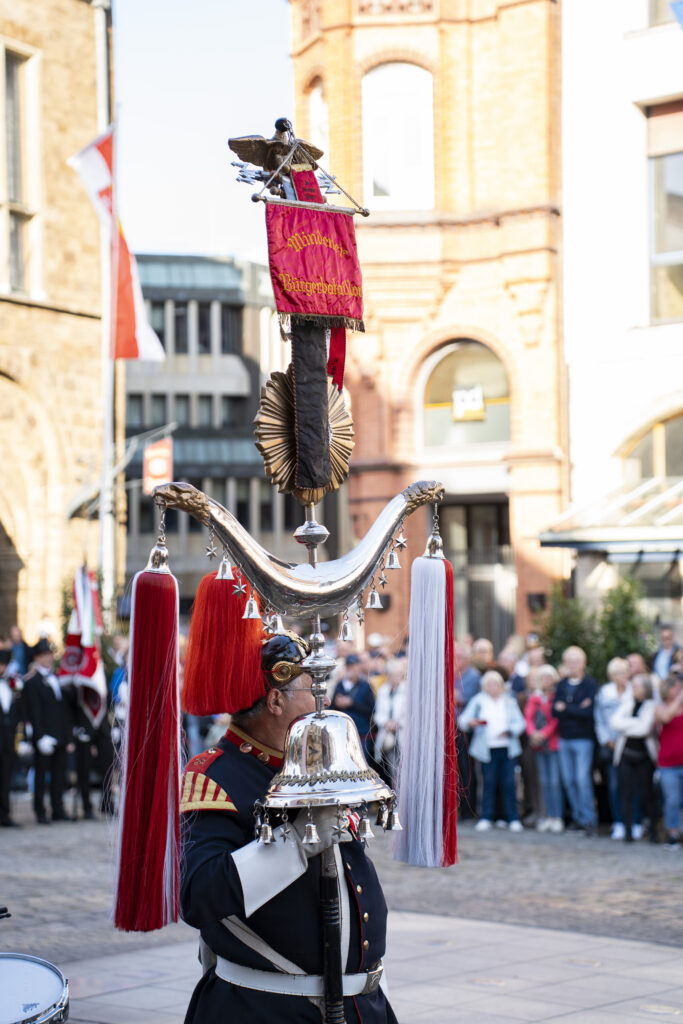 Das Mindener Bürgerbataillon ist ein traditionsreicher Verein der Stadt Minden und steht seit Jahrhunderten für Gemeinschaft, Heimatverbundenheit und gelebtes Brauchtum. Früher bezeichnete das Bataillon die Gesamtheit der wehrpflichtigen Bürger der Stadt. Heute lebt diese Geschichte in moderner Form weiter: als Zusammenschluss engagierter Menschen, die Traditionen pflegen, Veranstaltungen gestalten und das gesellschaftliche Leben in Minden bereichern. Zum Bürgerbataillon gehören sechs Einheiten – darunter die Rebenkompanie als 3. Kompanie – sowie die Bürgereskadron, das Tambourkorps und die Junggesellenkompanie. Gemeinsam stehen sie für Zusammenhalt, Ehrenamt und die Verbundenheit mit unserer Heimatstadt Minden.